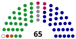 The Kaohsiung City Council (Chinese: 高雄市議會; pinyin: Gāoxióng Shì Yìhuì) is the city council of Kaohsiung City, Republic of China. It is currently composed of 65 councilors, each serving a four-year term, elected using the single non-transferable vote system. The speaker and deputy speaker of the council are elected by fellow councilors through a secret ballot. Kaohsiung residents, aged 23 or above and having resided in the city for more than four months, are eligible to cast their votes or run in the municipal election.[1] Along with the New Taipei City Council, the city council is the largest Taiwanese local council in terms of seats.