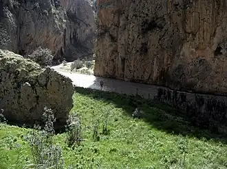 The canyon is the valley of the Çakıt Creek one of the main tributaries of Seyhan River. Its course is from north to south and the birds flight distance between its two ends is about 5.5 kilometres (3.4 mi). The northern end is the Çakıt dam reservoir. The southern end at 37°14′40″N 34°58′36″E / 37.24444°N 34.97667°E is marked by a bridge near Kapıkaya village. The distance to Adana is 72 kilometres (45 mi). The famous Varda Bridge is situated about 2 kilometres (1.2 mi) west of the canyon.[1]