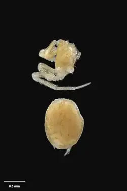 The female is recorded at 1.78mm in length. The carapace is pale coloured. The legs are light brown. The abdomen has a chevron dorsally.[1]