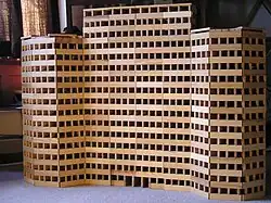 Kapla is a construction set for children and adults. The sets consist only of identical wood planks measuring 11.7 cm x 2.34 cm x 0.78 cm. This 15:3:1 ratio of length:width:thickness is different than the dimensions used for traditionally proportioned building blocks (such as unit blocks), and are used for building features such as lintels, roofs and floors. They are known for their stability in the absence of fastening devices.[1]