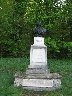 On the way of the Linzergasse to the monastery are standing 13 oratories with the way of the cross, which were built up between 1736 and 1744, a memorial place for Wolfgang Amadeus Mozart and the old Paschinger Schlössl, known as the former house of Stefan Zweig. The different old artillery bastions from 1629, which are distributed around the mountain, the military tower of the Felixpforte and the long military walls with their small fortified towers (Auslug) also were built in the time of the Thirty Years' War, and are majority are kept well. On the crest of the mountain, attainable with a drawbridge, there stands the Franziskischlössl. Today it is a small restaurant. Adolf Hitler wanted to establish a gigantic Gauburg, a stadium and a festival house on that mountain. The end of the war forestalled it however and the Kapuzinerberg is still free of intensive land development.