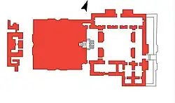 North of the temple stood the royal palace. The palace was placed on a platform, originally about 18m high. All remains of the palace building on the platform are lost, although many wall paintings were found. They show that the palace was richly decorated. Next to the palace a second, badly preserved palace building was found. Perhaps this was the entrance for a bigger palace complex, incorporating both palaces.