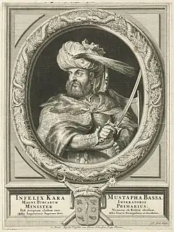 Kara Mustafa Pasha (Ottoman Turkish: قره مصطفى پاشا; Turkish: Kara Mustafa Paşa; "Mustafa Pasha the Courageous"; 1634/1635 – 25 December 1683) was an Ottoman nobleman, military figure and Grand Vizier, who was a central character in the Ottoman Empire's last attempts at expansion into both Central and Eastern Europe.