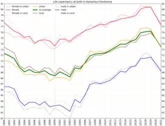 - ^ "Ожидаемая продолжительность жизни при рождении" [Life expectancy at birth]. Unified Interdepartmental Information and Statistical System of Russia (in Russian). Archived from the original on 20 February 2022. Retrieved 28 June 2022.