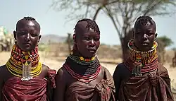 The Karamojong or Karimojong are a Nilotic ethnic group.[1] They are agro-pastoral herders living mainly in the north-east of Uganda. Their language is also known as ngaKarimojong and is part of the Nilotic language family. Their population is estimated at 475,000 people.[1][5]