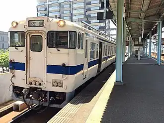The Karatsu Line (唐津線, Karatsu-sen) is a regional railway line in Saga Prefecture, Japan, owned and operated by Kyushu Railway Company (JR Kyushu). It connects Kubota in Saga City to Nishi-Karatsu in Karatsu City, both in Saga Prefecture, Japan.[1] The line was originally constructed to carry coal from the Karatsu coal fields to the Port of Karatsu for export and had many branch lines to coal mines which have since closed.[2][3]