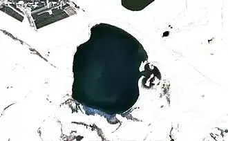 The village of Dorogovka lies 4.2 kilometers (2.6 mi) to the west, and Obaly (until 2019 — Pervomayskoye) 4.5 kilometers (2.8 mi) to the south.[2][1] There is a leisure center on the southeastern lakeshore.[3]