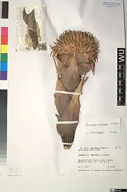 Karawata depressa is a species of flowering plant in the family Bromeliaceae, endemic to Brazil (the state of Bahia).[1][2] It was first described by Lyman Bradford Smith in 1941 as Aechmea depressa.[3]