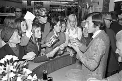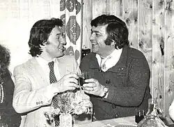 Gott established the Apollo Theater in 1965, along with two colleagues from Semafor: Jiří and Ladislav Štaidl.[5] At this point, he was already well known to the public, appearing in the programs Pilgrimage for Two and Evening Prayer while building a repertoire with his own orchestra.[5] He began composing his own songs, and toured Czechoslovakia and abroad with the Apollo Theater.[5] That year, he released his first album, Karel Gott Sings with Supraphon, followed by an English export album titled The Golden Voice of Prague (Artia-Supraphon).[4][6]