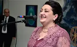 Karine Aslamazyan (Armenian: Կարինե Ասլամազյան; born 1956) is an Armenian painter and musician.[1][2] She was born in Yerevan in a family of Armenian intellectuals. Aslamazyan studied at the Yerevan State Art and Theater Institute. In 2004, Karine Aslamazyan had her first solo exhibition under the title "Armenia, a country of high culture," dedicated to the 100th anniversary of Svetoslav Roerich's birth.[3] Since 2014, Aslamazyan has been an honorary member of the Artists' Union of Armenia.