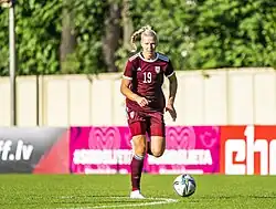 She continued to play for her national team at age groups, scoring twice for the Latvia under-19 team in the 2017 Baltic Cup.[8]