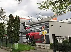 Eye-catching is the airplane of the type Ilyushin Il-18 on the roof. It belongs to the »Da Capo Vintage Car Museum & Event Hall«.[20]