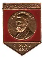 Karl Johan (K. J.) Gabrielsson (1861–1901) was a Swedish socialist writer and poet. The son of a railway worker, he was born to a poor family in Töreboda, Västra Götaland County, Gabrielsson eventually settled in Stockholm where he became a socialist and writer, mainly of revolutionary poems, for the newspaper Social-Demokraten. He died from tuberculosis in 1901 following a long illness.