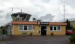It served as a regional airport and operated flights to Stockholm Arlanda Airport until 1991, in the 1980s to Bromma Airport, Oslo, and Copenhagen.[1] The airport stopped civilian passenger air traffic flights when arms manufacturer Bofors changed its flights to Örebro Airport. The airport hosts several events, such as air shows open to the public.[2][3]