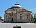 Trefaldighetskyrkan (Church of Holy Trinity), commonly known as Tyska kyrkan (The German Church) was built between 1697 and 1709, following Tessin's drawings. It is likewise located at the market square in the centre core. The dome-shaped roof also takes its influence from Italian architecture and is rarely seen on Swedish churches.