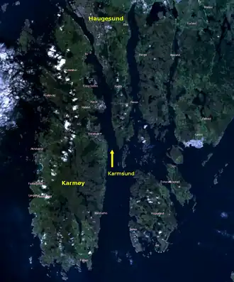 - ^ a b Store norske leksikon. "Karmøy – øy" (in Norwegian). Retrieved 2015-11-03.