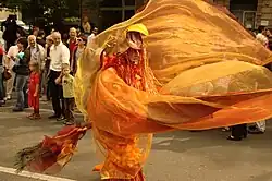 The Karneval der Kulturen then grew to a four-day festival with numerous musical and theatrical performances. The number of visitors grew from 50,000 in 1996 to 300,000 in 1997, 1 million in 2000,[1] to more than one million in 2018.[2] The number of participants also grew from 2,200 to more than 4,000,[3] organised into 66 procession groups (2018).[2] These procession groups come from all over Germany, but also include South American and African groups.[4]