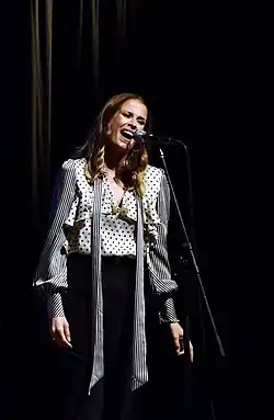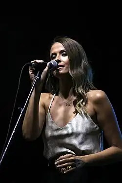 She represented Macedonia in the Eurovision Song Contests 2002 and 2007, ranking 19th and 14th, respectively.[1][2] Gočeva has received numerous awards and accolades both in North Macedonia as well as other Balkan award ceremonies. She is widely known as the most famous Macedonian female pop singer and has received the label "Macedonian pop princess/queen" and a "pop diva". Although most of her songs are sung in Macedonian, Gočeva has also released records in Serbo-Croatian and English leading to an increase in popularity in Bulgaria and ex-Yugoslav countries such as Serbia, Bosnia and Herzegovina, Montenegro, and Croatia. Additionally, Gočeva is renowned for her casual fashion style for which she frequently collaborates with Caci Pakoska. With her music work, Gočeva has also taken part in campaigns against drug use, uterine cancer and gender-related violence.