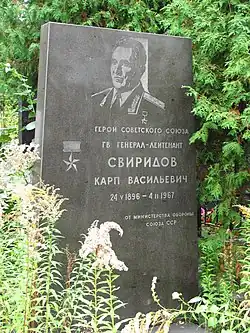 Karp Vasilyevich Sviridov (Russian: Карп Васильевич Свиридов; 24 May 1896 – 4 February 1967) was a Soviet Army lieutenant general and a Hero of the Soviet Union.