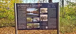 The pond is located in Treptower Park south of the Soviet memorial (Sowjetisches Ehrenmal). It was created by Berlin garden architect Gustav Meyer at the end of the 19th century as part of the park's design. He created a playground nearby and used the excavated soil from the pond for this purpose. This was to be fed by the Heidekampgraben ditch, so Meyer had a dam built in the direction of the ditch during the construction work. However, a dismissed worker destroyed it, causing the depression to fill with water and delaying work on the pond. The tenants of the surrounding pubs stocked the pond with carp, giving the previously nameless body of water its current name.