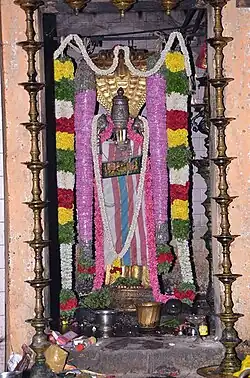 The Vagulari temple atop Vagulagiri hill enshrines its main deity, Lord Venkatachalapathy, in the form of two sticks ('ther kals'-form of sticks used to construct a chariot) made of sandalwood.There is a sannadhi for Lord Srinivasa and consorts which are believed to exist even before the sannadhi of Venkatachalapathy. Sannadhis of Lords Venkatesa and Srinivasa overlook the village and some believe that the deities protect the villagers from evils, communicable diseases and other dangers. The Chithirai festival attracts many devotees. Puratasi Sani Garuda Sevai is celebrated in the Saturdays of Puratasi, and the Pavithrothsavam festival is celebrated for three days in July.