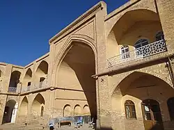This school is one of the buildings of the Qajar era, which has a central courtyard and is surrounded on four sides by two-story rooms and two north and south porches.[43][44]