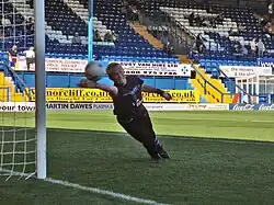 On 14 August 2009, Schmeichel signed for League Two side Notts County in a deal that is believed to have broken the club's previous transfer record. The transfer reunited Schmeichel with his former Manchester City manager, Sven-Göran Eriksson, who had recently been appointed director of football for Notts.[40] He was the highest paid player at the club, earning £1 million annually.[41] He made his debut on 22 August and kept a clean sheet in the side's 3–0 win against Dagenham & Redbridge. In September 2009, Schmeichel almost scored with an audacious overhead kick against Morecambe when he came up from a corner late on in the game.[42]
