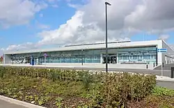 A completely new regional airport has been built next to the old airport to accommodate commercial chartered and scheduled carriers as well as the business and general aviation from the old airport. The new airport has officially opened on 4 April 2013 with the arrival of a Germania flight from Frankfurt Airport.