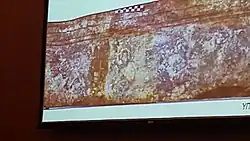A fresco below the sphinxes mimics an Ionian peristyle.[14][15]