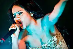 DeLuna is able to achieve very high grades because of the four years she studied opera. She is a soprano, her register covering 5 octaves.[55] Entertainment Weekly writes that "DeLuna fills the gap between Rihanna and Shakira", and Billboard Magazine states that her performance "can initiate a musical movement by his own forces".[56][57]