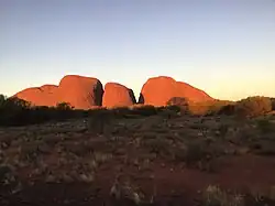 Kata Tjuṯa / Mount Olga has both a sunrise and sunset viewing area, which are accessible via a short walk from Kata Tjuṯa Road.[11] There are also two walks that enter the domes of Kata Tjuta: