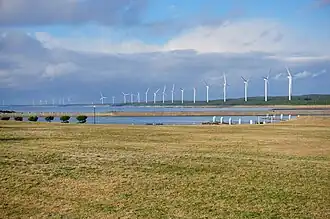 Katagami is located in the coastal plains of northwestern Akita Prefecture, with the Sea of Japan on the southwest and the remnant of Lake Hachirōgata to the northwest, bordering Ikawa Town to the east, Akita City to the south, Oga City to the west, and Ogata Village across Lake Hachiro to the north. It has the smallest area of any city in Akita Prefecture.[2]