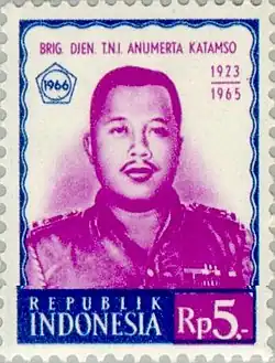 Katamso Darmokusumo[1] (5 February 1923 – 1 October 1965) was the commander of Military District (Korem) 072 in the Diponegoro Area Military command of the Indonesian Army in Central Java. He was kidnapped on 1 October 1965 and killed later the same day by members of the 30 September Movement. He was declared one of Indonesia's national heroes.[2]