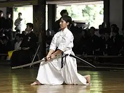 Katana were used by samurai both in the battlefield and for practicing several martial arts, and modern martial artists still use a variety of katana. Martial arts in which training with katana is used include aikidō, iaijutsu, battōjutsu, iaidō, kenjutsu, kendō, ninjutsu,Tenshin Shōden Katori Shintō-ryū and Shinkendo.[77][78][79] However, for safety reasons, katana used for martial arts are usually blunt edged iaito or wooden bokken, to reduce the risk of injury. Sharp katana are only really used during tameshigiri (blade testing), where a practitioner practices cutting a bamboo or tatami straw post.