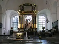 In 1723 the church, together with half of the buildings in the parish, was completely destroyed in a major fire. Rebuilding started almost immediately, under supervision of Göran Josua Adelcrantz, the city architect, who designed a larger, octagonal tower.