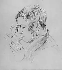 Kate Greenaway was born in Hoxton, London, the second of four children, to a working-class family. Her mother, Elizabeth, was a dress maker and her father, John, an engraver who gave up steady employment with Ebenezer Landells' engraving firm to strike out on his own. When Greenaway was very young, he accepted a commission to provide the engraved illustrations to a new edition of Charles Dickens's The Pickwick Papers, sending his young family away to relatives in the countryside to give himself solitude while producing the engravings. Kate's earliest memories are of Rolleston, Nottinghamshire, which affected her deeply. It was a place she returned to frequently in her childhood.[1][2] According to children's literature scholar Humphrey Carpenter, the period was to Greenaway "crucial ... she felt it to be her real home, a country of the mind that she could always reimagine". After returning to grimy London streets Rolleston became a place to visit in her mind and constantly embellish.[2]