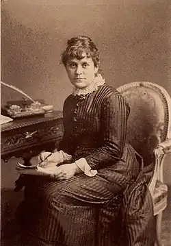 In 1857, at age 12, she began night classes at nearby Finsbury School,[2] a local branch of South Kensington School of Art participating in National Course of Art Training in the decorative arts. Night courses, open only to women, were offered in drawing, porcelain painting, wood engraving, and lithography.[6] She enrolled full-time a year later. The curriculum, devised by Henry Cole, was meant to train artisans in designing decorative wallpaper, tiles, and carpets. It emphasised strict adherence to copying geometric and botanical elements without creativity. There were four stages of courses, which she completed in 1864[6] before going to the Royal Female School of Art.[7]
