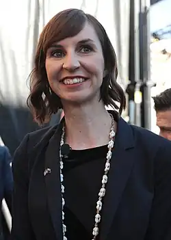 Kathy Hoffman (born 1985/1986)[1] is an American educator, speech-language pathologist, and politician who served as the Arizona Superintendent of Public Instruction from 2019 to 2023. A member of the Democratic Party, she took her oath of office with her hand placed on top of the children's book Too Many Moose, which she states holds special significance for her and her former students.[2]