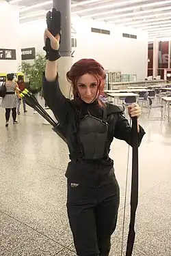 ![]() Katniss Everdeen, as portrayed by Jennifer Lawrence in the film The Hunger Games: Mockingjay – Part 1 | |