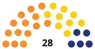 The Katowice City Council is the governing body of Katowice. The council has 28 elected members[2] elected every five years in an election by city voters through a secret ballot. The election of City Council and the local head of government,[3] which takes place at the same time, is based on legislation introduced on 20 June 2002.