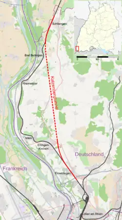 - ^ a b Ausbau- und Neubaustrecke Karlsruhe–Basel. Streckenabschnitt 9.1. Schliengen–Efringen-Kirchen–Eimeldingen (in German). Deutsche Bahn. December 2003. pp. 4, 7. (brochure)