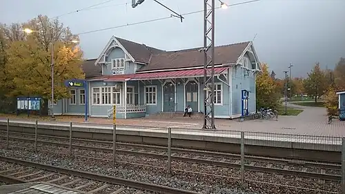 Kauklahti railway station (Finnish: Kauklahden rautatieasema, Swedish: Köklax järnvägstation) is a station on the Helsinki commuter rail network located in Espoo, Finland. The station is served by Helsinki commuter rail lines Y, U, L and E.