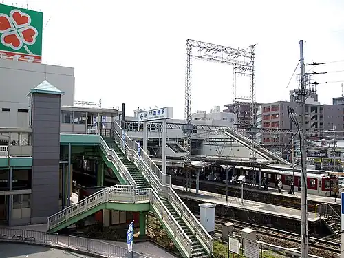 It is one of the train station of the Osaka line, and there are frequent train overtaking and a connection. The daytime time period is 3 Express/h, the suburban semi-Express local Express is 3/h, and the Local train is 1/h.