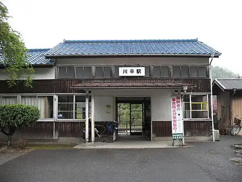 Kawahira Station was served by the 108.1 km Sankō Line from Gōtsu in Shimane Prefecture to Miyoshi in Hiroshima Prefecture, which closed on 31 March 2018.[1]