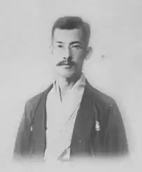 Bizan Kawakami (川上 眉山, Kawakami Bizan; March 5, 1869 – June 15, 1908) was a Japanese novelist of the Meiji era. His real name was Akira Kawakami (川上 亮, Kawakami Akira). Born in Osaka Prefecture, he dropped out of the school of liberal arts in Tokyo University and joined Ken'yusha. After struggling with the rise of naturalist literature yet remaining a popular author until his death, he died by suicide at age 40.