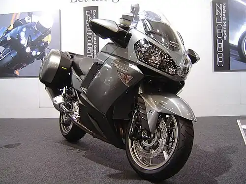 The Kawasaki 1400GTR, also known as the Concours 14 or ZG1400 in some markets, is a sport touring motorcycle produced by Kawasaki. The 1400GTR was introduced in September 2007 and is based on the ZX-14 platform.[3] It replaces the original GTR1000 (Concours), which was built from 1986 to 2006.[3]