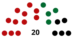 | Party | Seats | Net Gain/Loss | Seats % | Votes % | Votes | +/- |