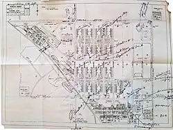 On 10 February 1942, the United States district engineer (Colonel E. G. Thomas) recommended a "5,450-acre dry farming area in Kearns" for an inland Army training site.[1] For one of "the eight new technical training installations rushed into operation" during 1942–3, a Kearns, Utah "plot of 1,405 acres was purchased".[2]: 110 The Kearns Center military unit was activated (designated) 1 May 1942,[3] and "a contract for a theater of operations cantonment was let" on 16 June 1942.[2] "Basic Training Center No. 5" began operations on 17 July[4] and opened on 20 July[2]: 110 under Training Command.[1] A "Denver and Rio Grande Western" spur was built to the installation's railroad station, and by 21 August all barracks were complete.[1] "Upon completion of their basic training most of the pre-aviation cadets [were] sent to one of the many college operated [flight schools] under the supervision of the Army Air Corp." [sic].[5] The 510th Training Group and 3 technical school squadrons (1032d, 1033d, and 1034th) were assigned to Kearns on 10 September 1942, and Kearns' commander—Colonel Leo F. Post—arrived by September 12.[1] Construction was completed in October 1942[2]: 110 and Kearns' "basic military training and technical training" continued until 30 Sep 43.[3]