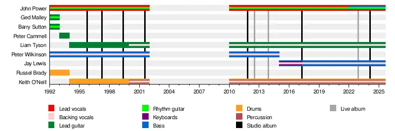 - Keith O'Neill – drums, percussion, backing vocals (1993–2001, 2010–present)