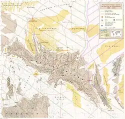 Brahim ag Abakada was another leader of Kel Ajjer ethnic groups. His father was an Urarhen from the Kel Imirhou. Brahim had great influence on the Kel Ajjer in the area between the Oued Imirhou (west of Tarat) and Aharhar (west of Iherir). Brahim opposed the influence of the Senusiyya and offered the French to fight with his Tuareg against the Senusiyya. However, his terms were not acceptable to them.[16] In response, he and his Tuareg fought the French troops with numerous attacks and kidnappings.[17] In February 1917, there was a battle at Ain el Hadjadj in the Oued Irarraren, 125 km northwest of Illizi. The French forces were hard pressed and suffered heavy losses. As a result, the French withdrew from the Tassili n'Ajjer region.[18] - In October 1918, a so-called pacification operation by the French colonial troops followed, in which goumiers and Tuareg from Kel Ahaggar were involved. The aim was to use a show of force to persuade the rebellious Kel Ajjer to cooperate and submit to “the French peace” (La paix française). Djanet was recaptured in the process.[19] - At the end of February 1919, an agreement was reached between Brahim and the French, in which he and his Tuareg placed themselves under French command. They gave him the title of Amghar of the Imrad of the Tassili.[20]